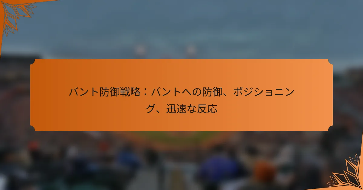 バントに対する守備は、適切なポジショニング、迅速な反応、チームメンバー間の効果的なコミュニケーションを強調する戦略的アプローチを必要とします。バッターの行動を予測し、それに応じて戦術を調整することで、チームはバントの成功率を大幅に低下させることができます。選手は、重要な試合状況での反応能力を高めるために、ドリルやメンタル準備を通じてスキルを磨く必要があります。