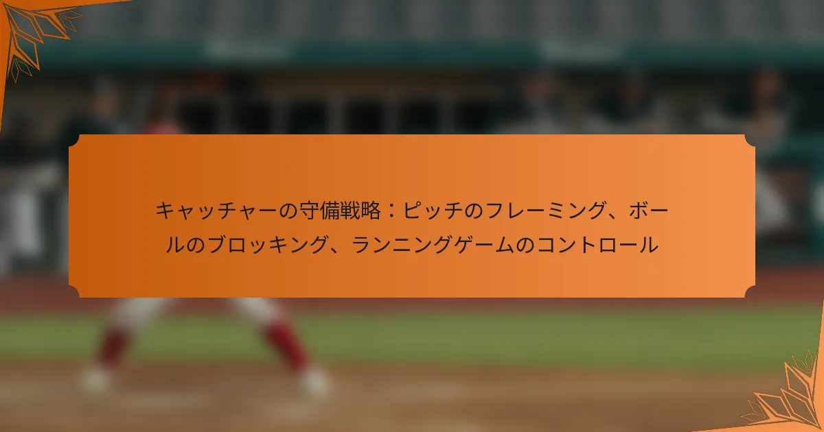 キャッチャーの守備戦略は、試合の結果に影響を与えるために不可欠であり、ピッチのフレーミング、ボールのブロッキング、ランニングゲームのコントロールという3つの主要な領域に焦点を当てています。これらの技術を習得することで、キャッチャーはその効果を大幅に向上させ、チーム全体の成功に貢献することができます。