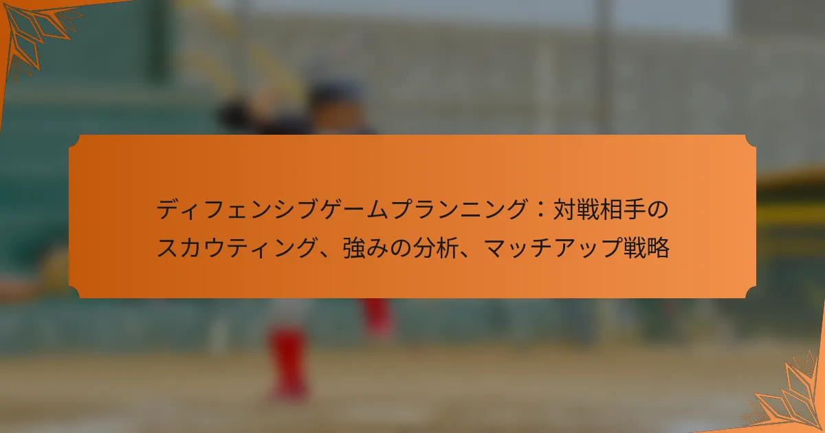 ディフェンシブゲームプランニングは、チームスポーツにおいて対戦相手の強みを打ち消し、弱みを利用するための戦略を立てることを含みます。これは、チームのパフォーマンスを向上させ、試合に勝つ可能性を高めるために重要です。
