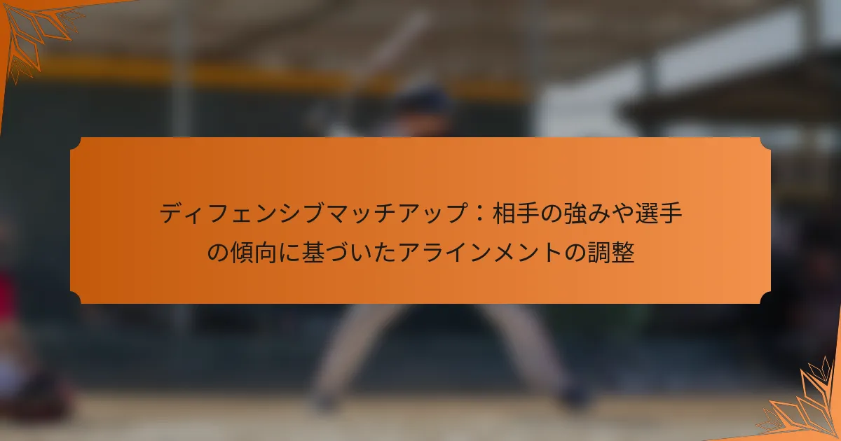 ディフェンシブマッチアップは、特定のディフェンダーを相手選手のスキルや傾向に基づいてペアリングすることを含みます。この戦略は、相手が持つ攻撃の脅威を無効化することを目的としており、成功するディフェンシブプレイの可能性を高めます。コーチは、選手の統計、身体的特性、過去のパフォーマンスを分析して最適なマッチアップを決定します。