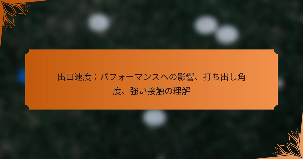 選手のパフォーマンスにおけるエグジット・ベロシティの重要性