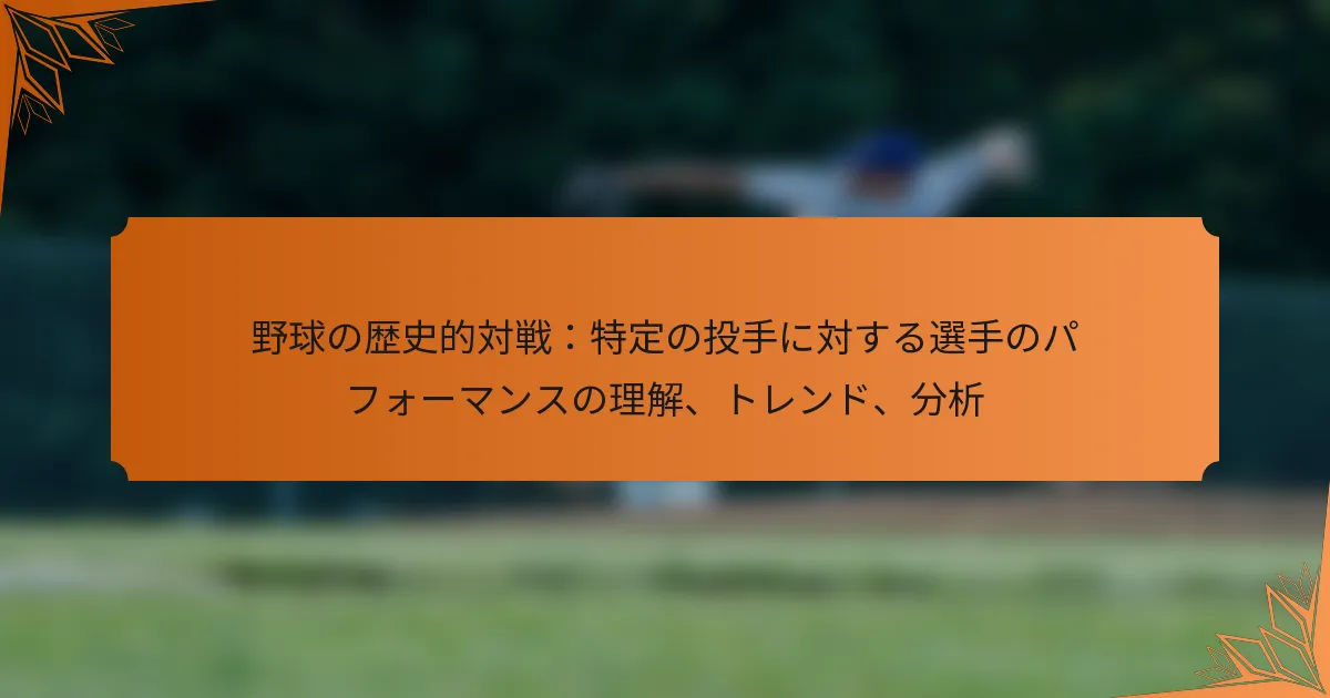- 長期的な対戦成績は、特定の投手に対して一貫して良いパフォーマンスを発揮する選手のパターンを明らかにすることがあります。