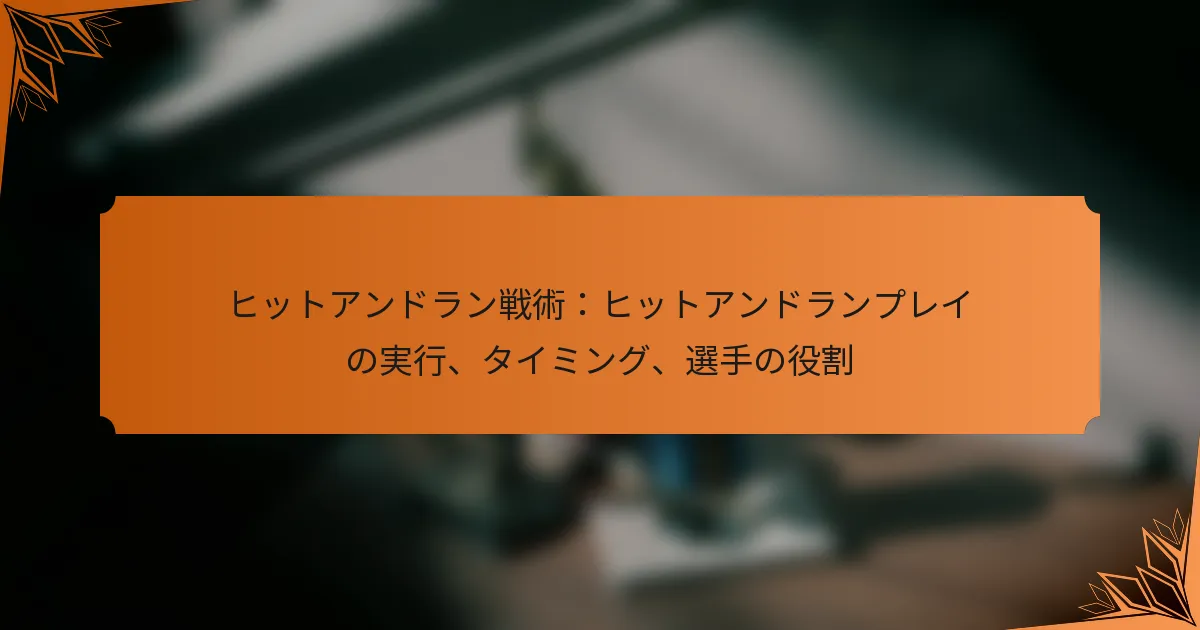 野球におけるヒット・アンド・ラン戦術は、走者がバッターがピッチにスイングしている間に塁を盗もうとする戦略的な動きであり、守備にプレッシャーをかけ、得点機会を高めます。成功するためには、正確なタイミングと選手間の明確なコミュニケーションが必要であり、バッター、走者、投手、キャッチャーの各役割がプレーの効果にとって不可欠です。行動を調整することで、チームは相手を不意を突き、塁上の走者を進めるチャンスを増やすことができます。