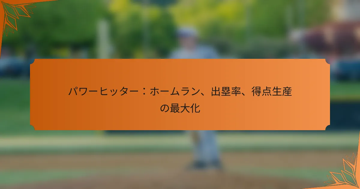 パワーヒッターは、効果的なスイングメカニクス、特化したトレーニングプログラム、環境の影響を理解することに焦点を当てることで、ホームランを最大化できます。重要な要素には、バットスピードの最適化、筋力トレーニング、ボールパークの寸法を分析して全体的なパフォーマンスを向上させることが含まれます。