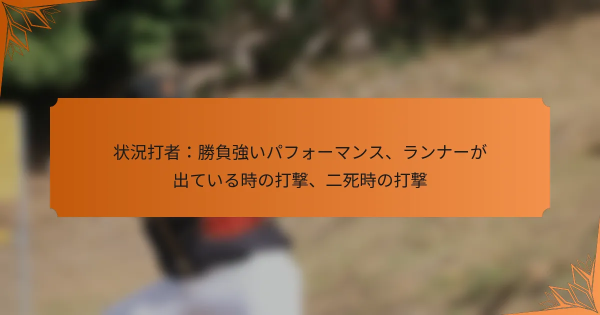 状況打撃とは、特にランナーが塁にいるときや2アウトのシナリオなど、プレッシャーの中でパフォーマンスを発揮する選手の能力を指します。この分野で優れた選手は、チームの成功に大きな影響を与えるクラッチパフォーマンスの実績を持っています。